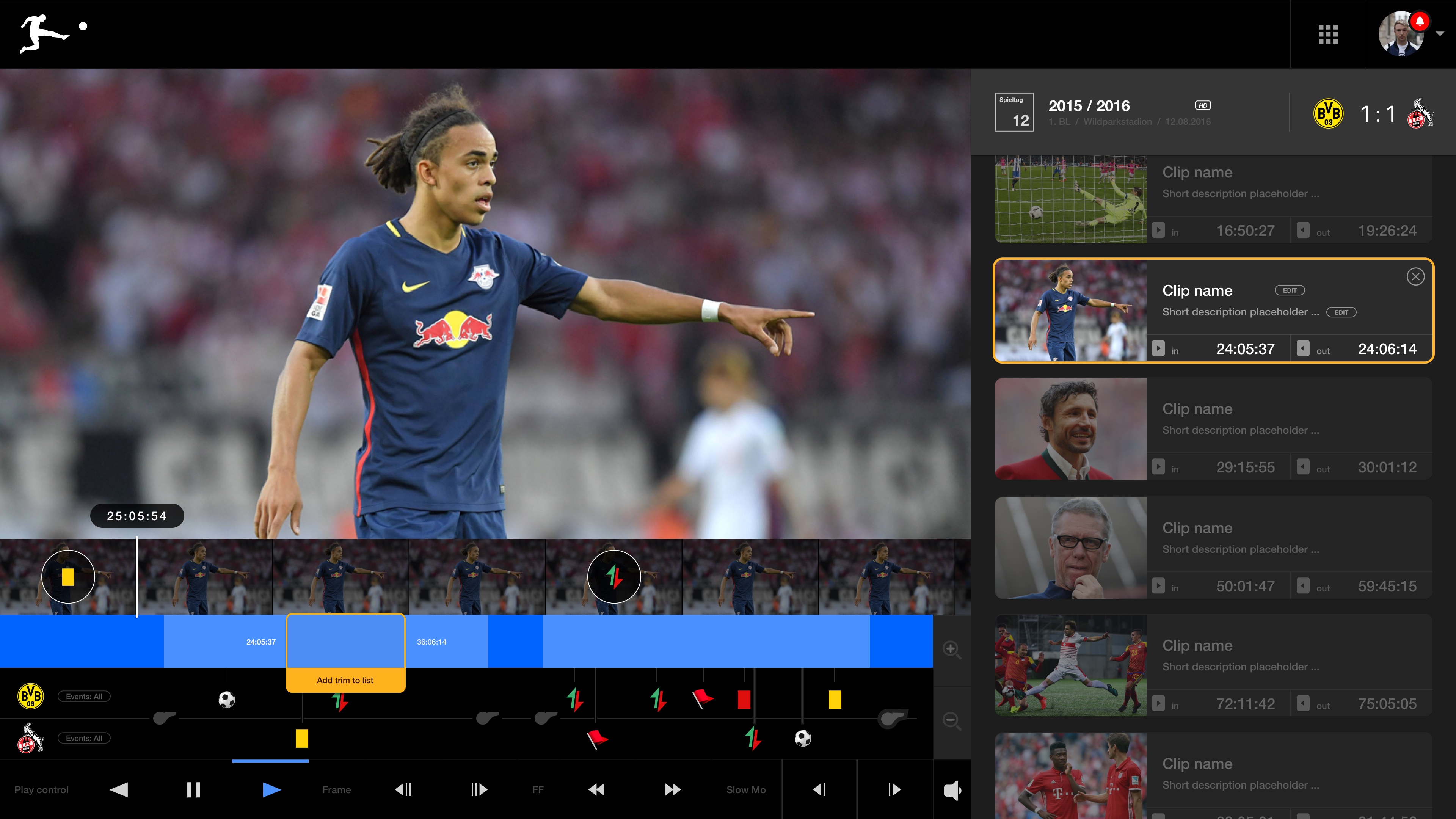 The Sportscast media hub of the German Bundesliga is a web application allowing media and partners to access every Bundesliga football match video easily. Not only that, but it also (with the assistance of Watson AI) enables an easy search for the key moments. These clips can be perfectly trimmed and ready for further distribution and presentation in just a few clicks.